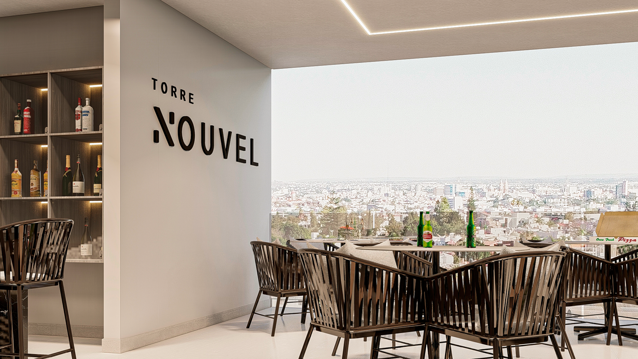 Torre Nouvel ofrece una selección distinguida de amenidades diseñadas para mejorar el estilo de vida de sus residentes. Incluye una acogedora sala con firepit y baños de alta gama, una exclusiva cava en el área de bar para cada departamento, una zona de asador al aire libre con mesas para comensales, bodegas de almacenamiento por departamento, un moderno espacio de coworking y una sala multiusos, todos con impresionantes vistas de la ciudad.